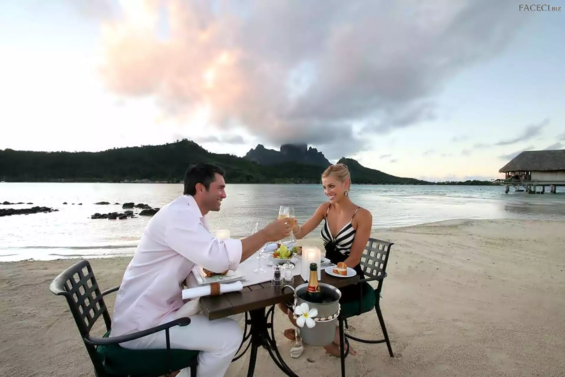 Szampan, Mężczyzna, Plaża, Morze, Kobieta - faceci.biz